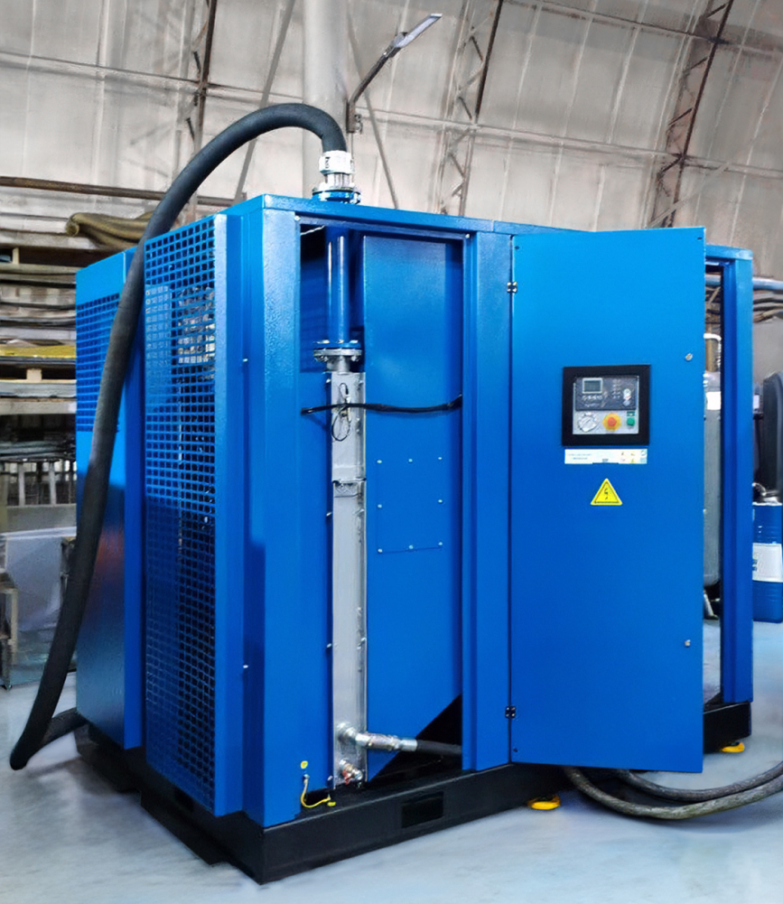 • винтовой маслозаполненный компрессор с прямым приводом ВК150-10BC мощностью 110 кВт, рабочим давлением 10 бар и производительностью 16 100 л/мин, оснащенный частотным преобразователем (изготовлен на заказ в соответствии с техническим заданием клиента);